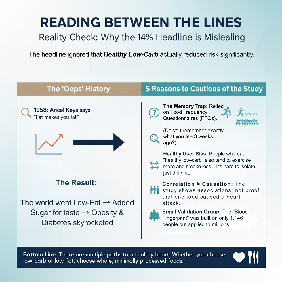 That said, several important limitations in the study drop my confidence in these findings and underscore why we should be CAUTIOUS about making overly strong dietary proclamations.